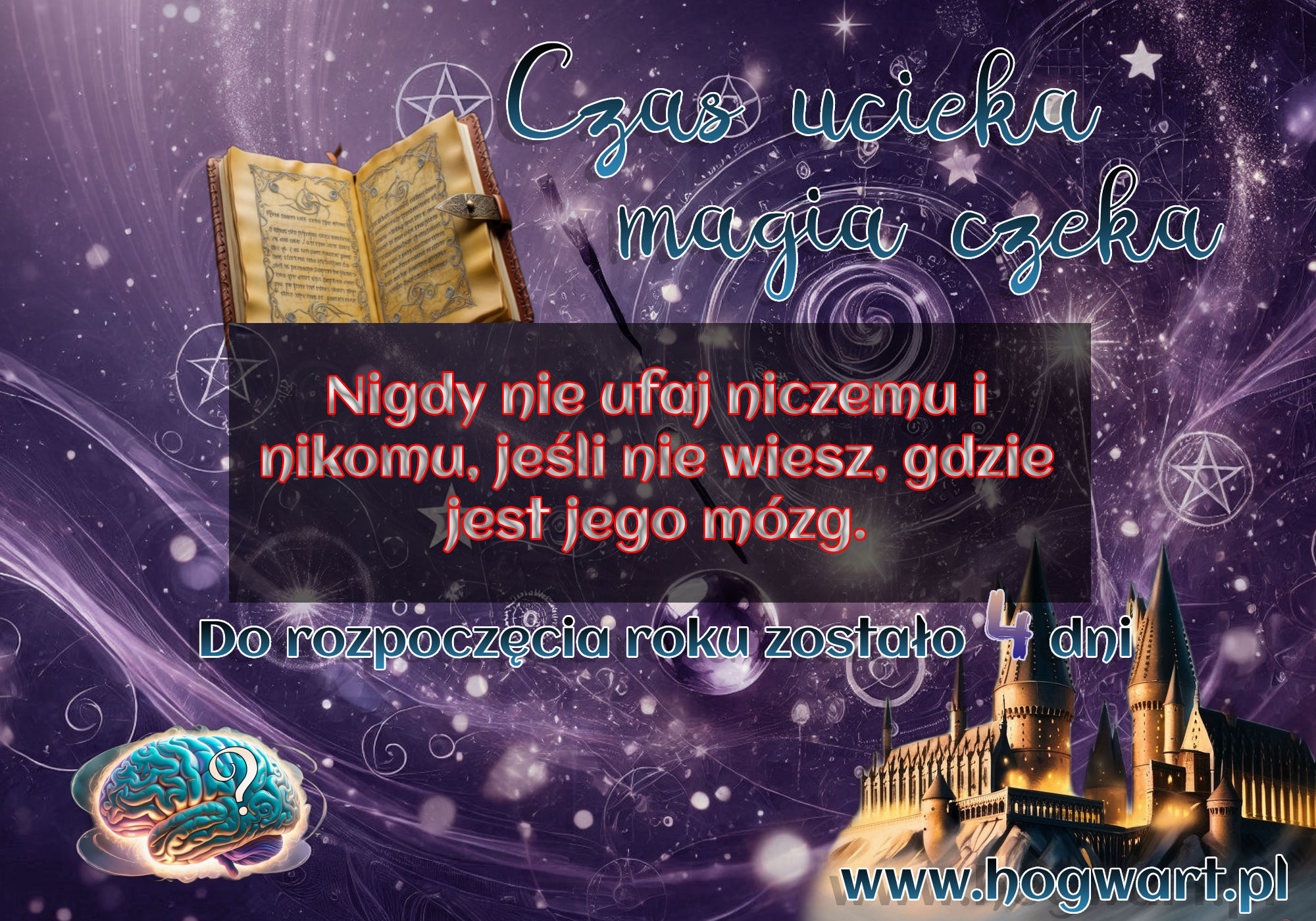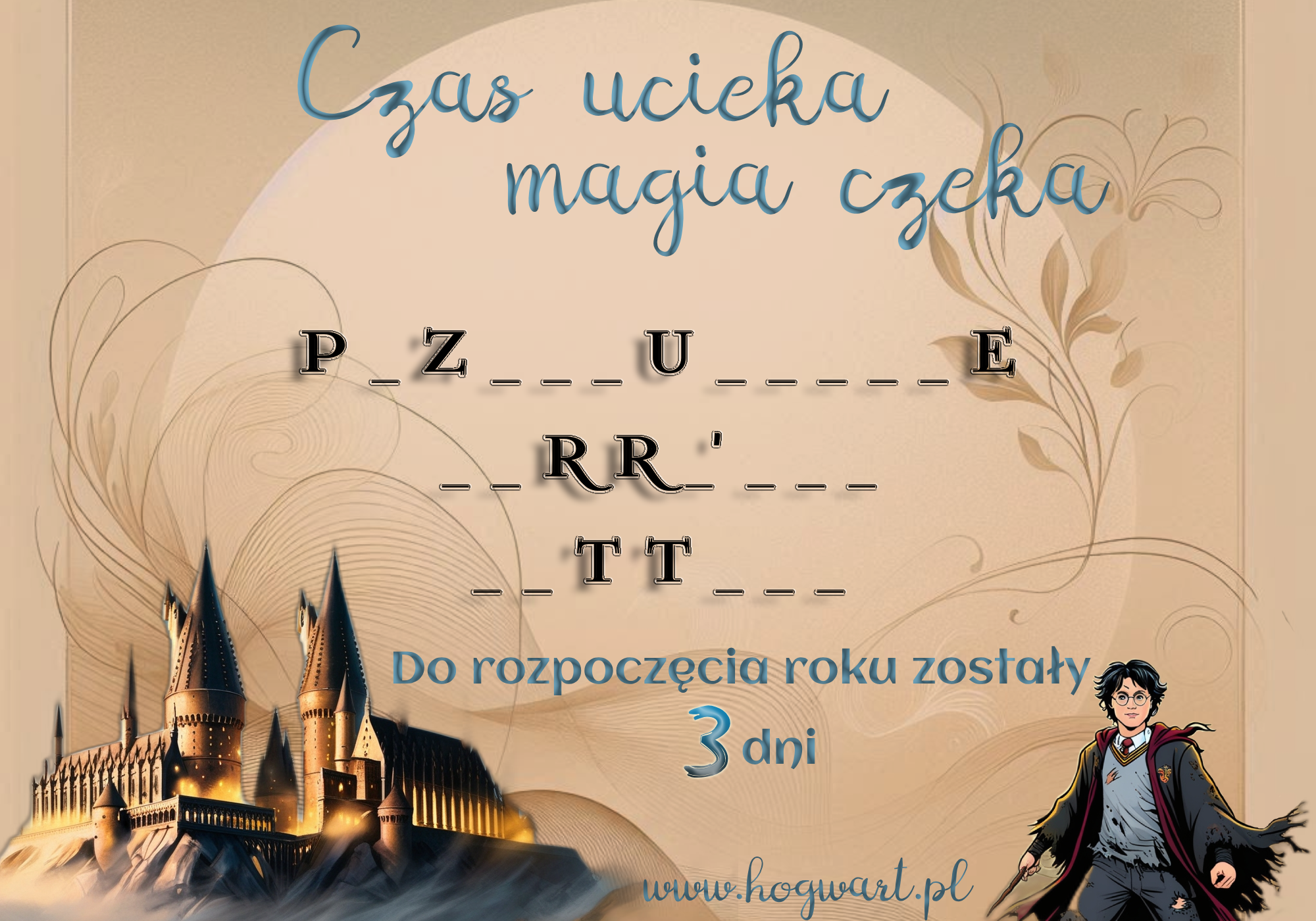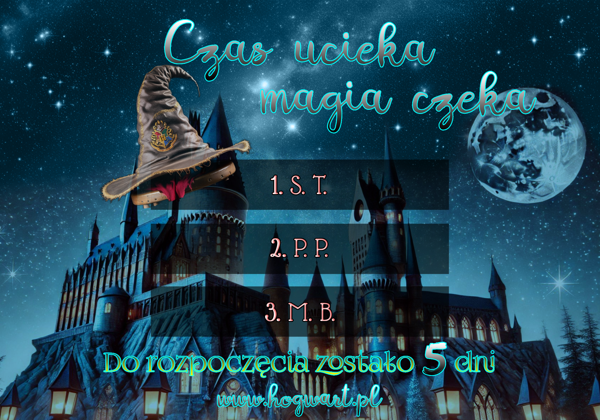 Od dzisiaj każdego dnia będziecie mieli do wykonania zadanie, które pojawi się w trzech miejscach - na stronie szkoły, szkolnym Fanpage'u i na Instagramie. Jest to doskonała okazja do zdobycia pierwszych punktów i galeonów, a w przypadku nauczycieli plusów do Rankingu Nauczyciela. Odpowiedzi udzielacie do północy w tę niedzielę (19.01) w komentarzu pod newsem bądź postem, a ponieważ konta nie zostały jeszcze wszystkie zaakceptowane, prosimy o przesyłanie odpowiedzi na szkolną sowę (dyrekcja@hogwart.pl). Pamiętajcie, żeby podpisać się magicznym imieniem i nazwiskiem, tj. tymi personaliami, pod którymi zapisaliście się do szkoły.